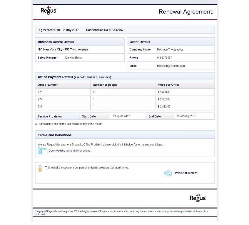 1.6 If the Center is no longer available: In the event that the Provider is permanently unable to provide the services and accommodation(s) at the Center stated in this agreement then this agreement will end and the Client will only have to pay monthly office fees up to the date it ends and for the additional services the Client has used. The Provider will try to find suitable alternative accommodation(s) for the Client at another Provider Center.