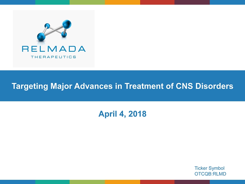 Ticker Symbol OTCQB:RLMD Innovations in Central Nervous System Diseases April 4, 2018 Targeting Major Advances in Treatment of CNS Disorders Ticker Symbol OTCQB:RLMD