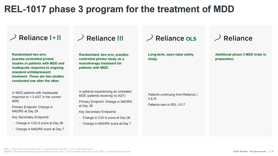 ©2023 Relmada - All rights reserved 14 Reliance: The Phase 3 Program for REL - 1017