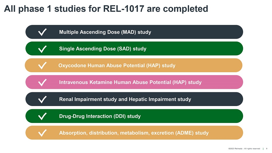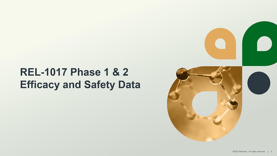 ©202 3 Relmada - All rights reserve d 8 REL - 1017 Phase 1 & 2 Efficacy and Safety Data